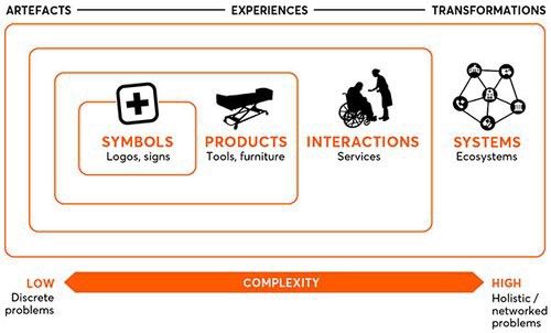 Buchanan’s work highlighted the emerging fourth order of design, which concerns itself mostly with the Systems & Environment. Whilst Buchanan doesn’t talk about this as Strategic Design, it does locate designers into a realm where challenges are inherently more complex (as referenced by Nesta’s adaptation of the above diagram in “What do we mean by design?” to show growing complexity as the orders expand [3].