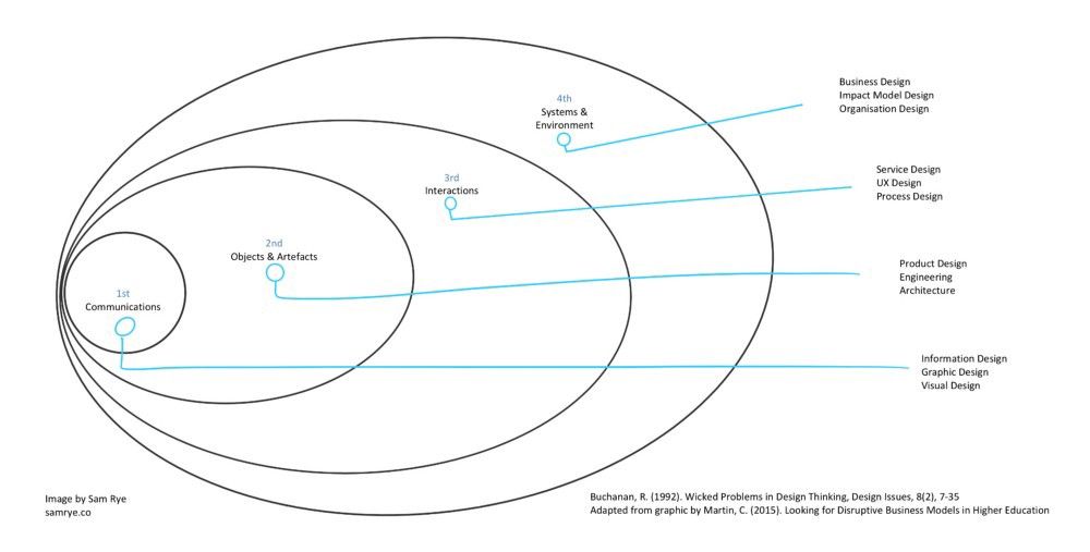 Richard Buchanan is often cited as an originator of the concept of the Four Orders of Design, which articulated the broadening landscape of design in his 1992 article Wicked Problems In Design Thinking [2].