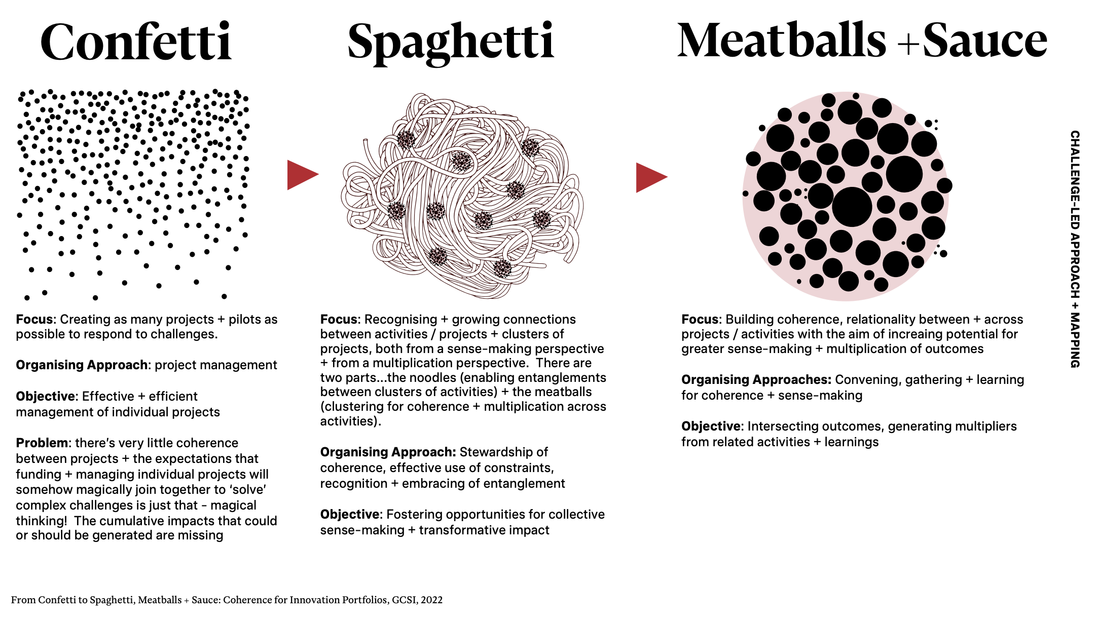 To tackle complex challenges, we know we need to go from disjointed isolated responses, to coordinated multi-point strategies - or from confetti to spaghetti as Ingrid Burkett would say.
